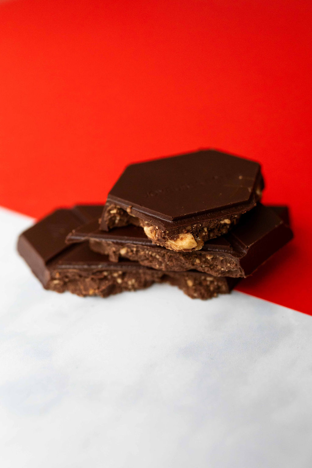 Ingrédients: chocolat 82% COLOMBIE & 70% CONGO*(pâte de cacao*, sucre de canne*, beurre de cacao*), praliné au noix*