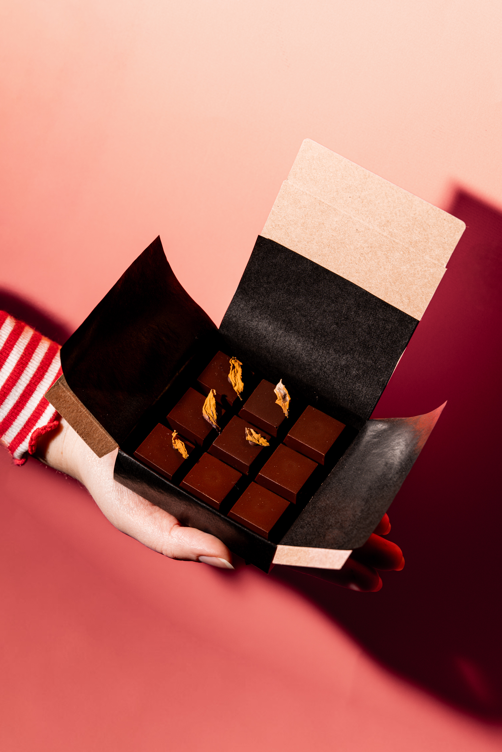 - 4 pralines chocolat noir INTENSE Colombie 82% au praliné amande, romarin & abricot