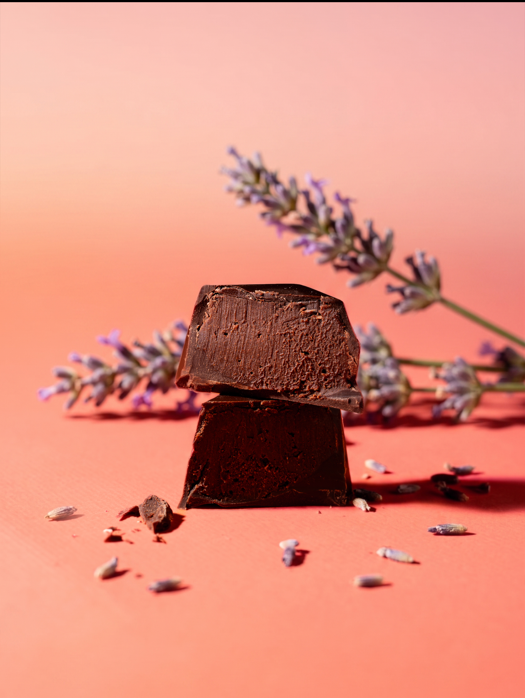 - 5 pralines au chocolat noir FRUITÉ Pérou 75% à la ganache infusée à la lavande